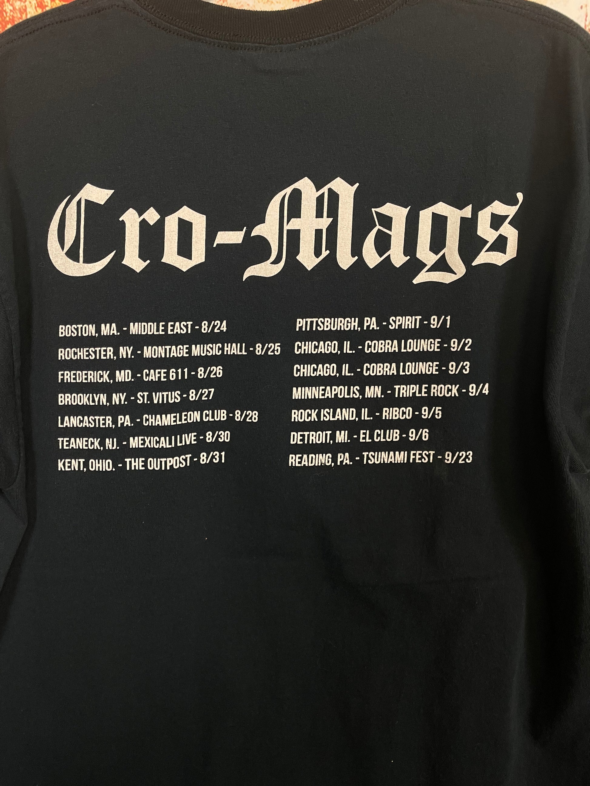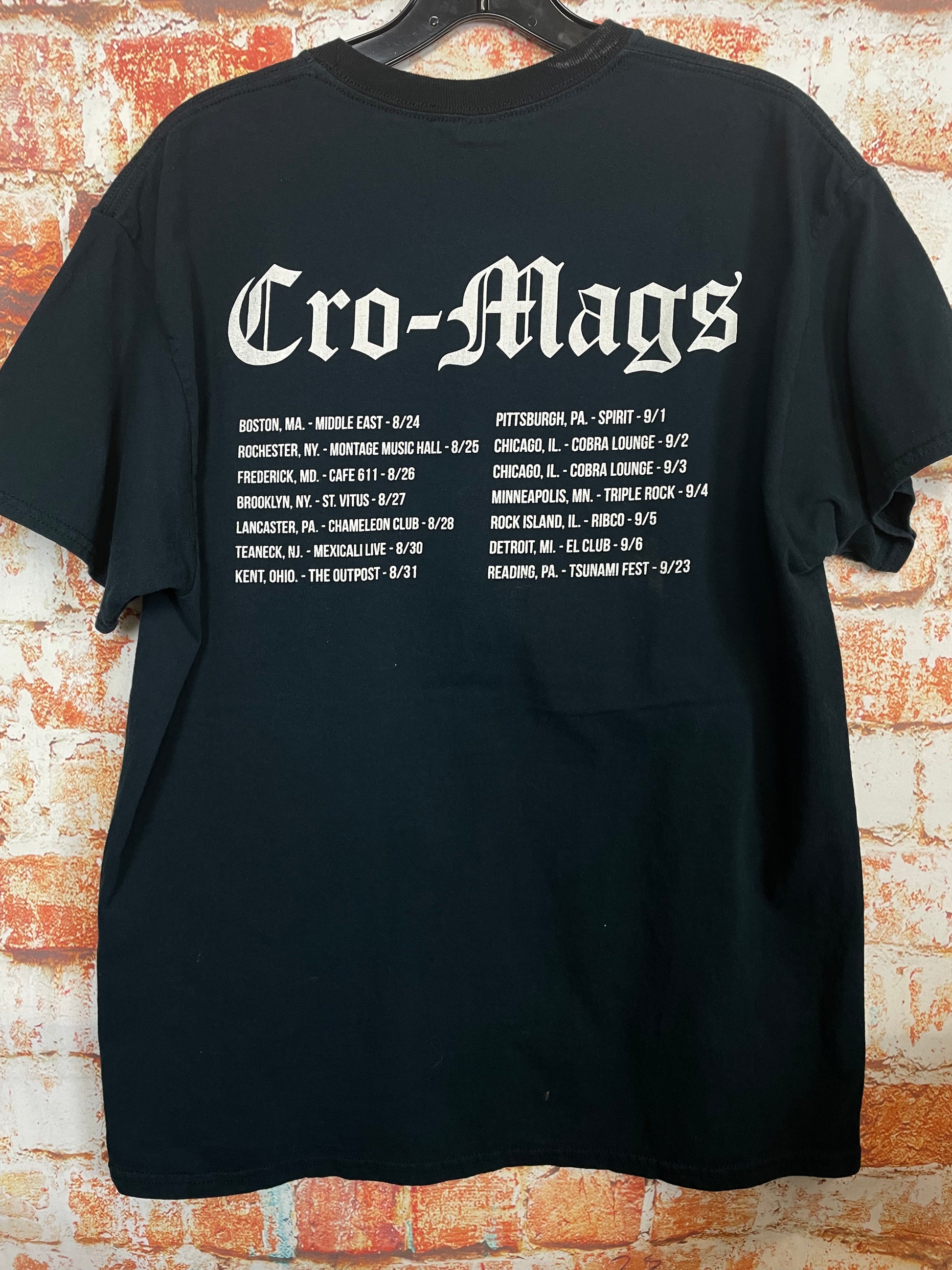 This secondhand shirt is in great shape. The graphic is large but not heavy allowing the shirt to breath easily. Fabric is still rich a color with barely any fading. No holes or stains.